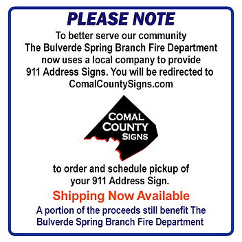 Locating an address in Bulverde Spring Branch can often be difficult, even in the daytime, and nighttime hours invite even more challenges in our rural area. A critical component of any successful rescue operation is time. Knowing the precise location of the emergency – your home – reduces that time and saves lives and property. The Global Positioning System (GPS) serves as a facilitating technology in addressing these needs. GPS will guide us to the location, but address numbers must be verified to assure first responders have arrived at the correct location. Having a highly visible address sign will help to pinpoint the exact location. BSB Fire & EMS offers double-sided reflective signs, which show up like a beacon in the night, saving valuable time.